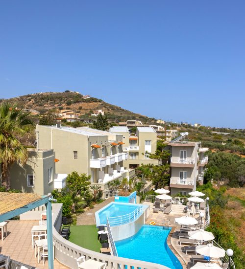 Ideally situated high above the village of Agia Pelagia, the Pelagia Bay hotel welcomes you with a magnificent view of the Sea of Crete. Only 22 kms from Heraklion, this wildly charming village resort cultivates “the art of good living”, right in the centre of one of the most beautiful bays of the island of Crete.
